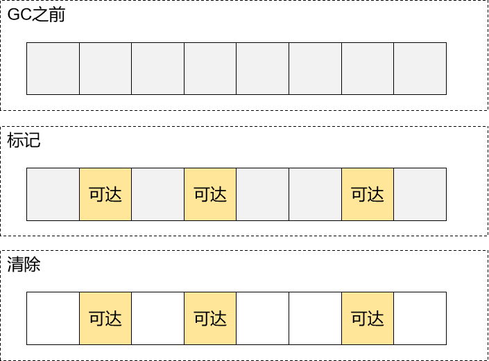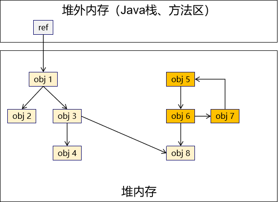 - 条件二:黑对象引用了一个白对象,黑对象本身不会被再次检测,而白对象最终会被当做垃圾清理