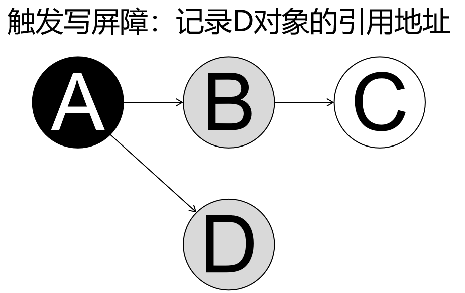 这一方案用大白话描述就是:如果黑色对象引用了白色对象,那么就把这个白色对象改为灰色,灰色对象会在下一轮扫描过程中被加入工作队列,所以这个方案破坏的是第二个条件