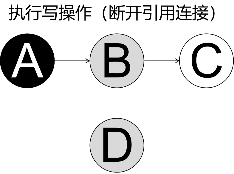 很明显:在B到D的连接断开之后,如果A或其它任何对象并没有重新引用D,那么D就成了浮动垃圾,需要在下一次GC时回收