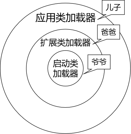 注意:各种类加载器之间存在着逻辑上的父子关系,但不是真正意义上的父子关系,因为它们从类型上并没有彼此继承,仅仅只是通过parent属性引用父加载器的对象